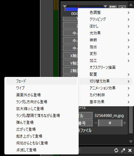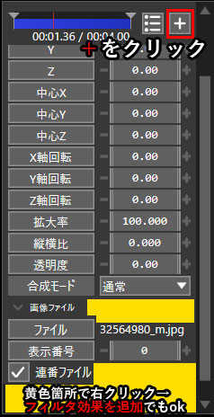 (もしくは黄色の空白部分を右クリック→ファイル効果を追加をクリック)
