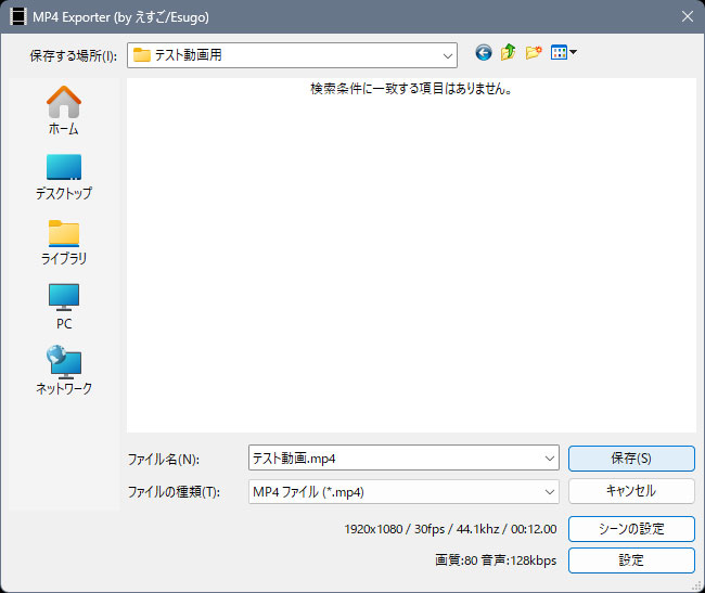 保存するウィンドウが表示されます。