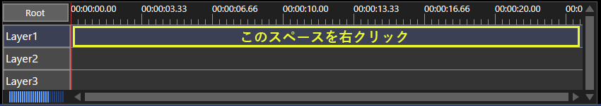 レイヤー1の横の黄色のスペース内、どこでもよいので右クリックします。