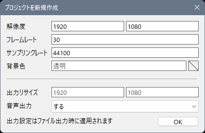 まず動画を作るにはプロジェクトファイルというものを作成します。