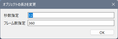 表示する時間が12.02秒等ではなく12秒という綺麗な数字にしたい!という時は変更したいオブジェクトの上で右クリック長さを変更→表示したい秒数を入力しOKをクリックで綺麗な長さのオブジェクトができます。