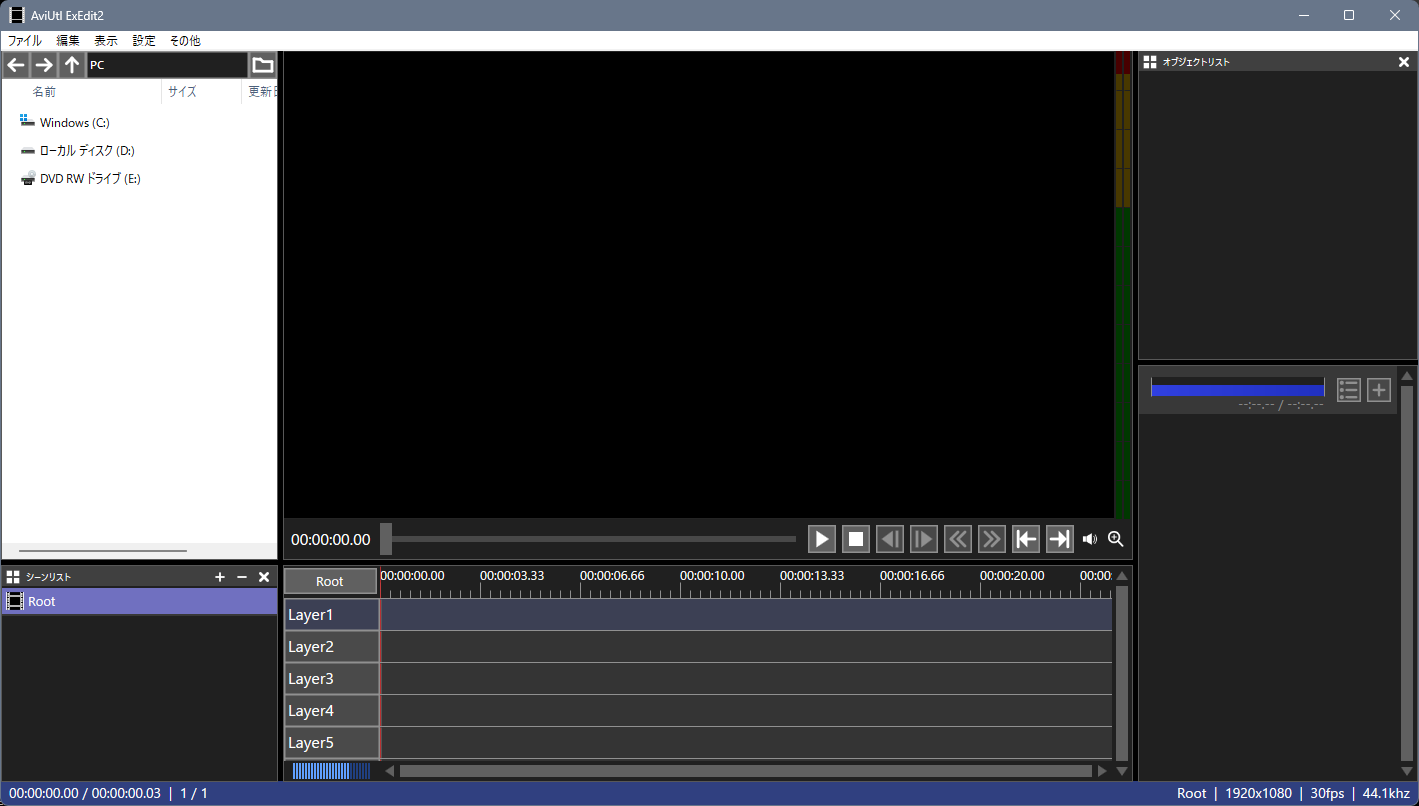Aviutl2起動時の画面